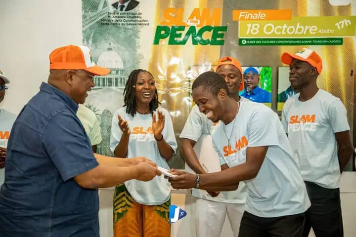 À l’occasion de la première édition du concours de slam « Slam Peace », tenue le samedi 18 octobre 2025, au Musée des cultures contemporaines Adama Toungara d’Abobo, le ministre de la Communication et porte-parole du Gouvernement, M. Amadou Coulibaly, a exhorté les rappeurs et slameurs à mettre leur talent au service de la promotion de la paix.